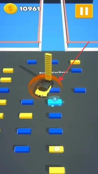 3、驾驶黄色小车,绕开长条障碍,靠近蓝色道具获取增益。