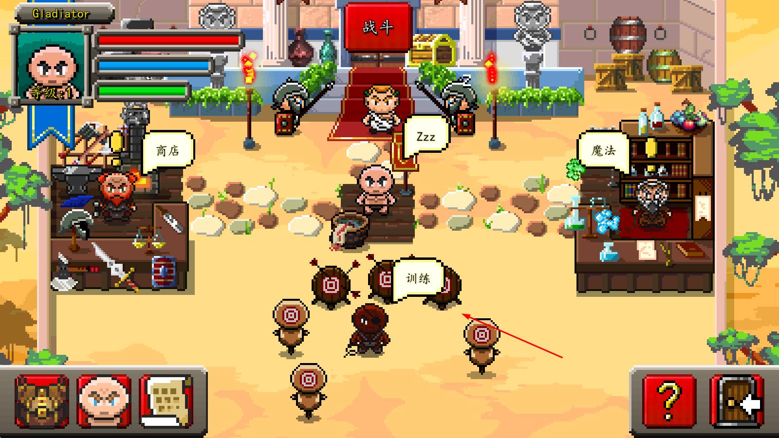 2、角色养成:通过战斗积累经验升级,使用金币购买武器装备,学习技能与加点天赋,全方位提升斗士战斗属性。