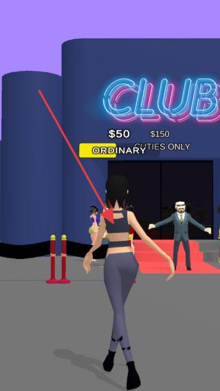 1、在CLUB门前,关注入场条件($50、$150,ORDINARY/CUTIES ONLY),操控角色靠近,满足要求即可进入俱乐部,开启场景互动。