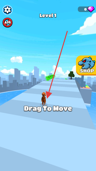 1、在Level1起始界面,依据【Drag To Move】提示,拖动屏幕控制角色(大猩猩)在道路上移动,收集绿色钞票,朝着关卡目标前进。