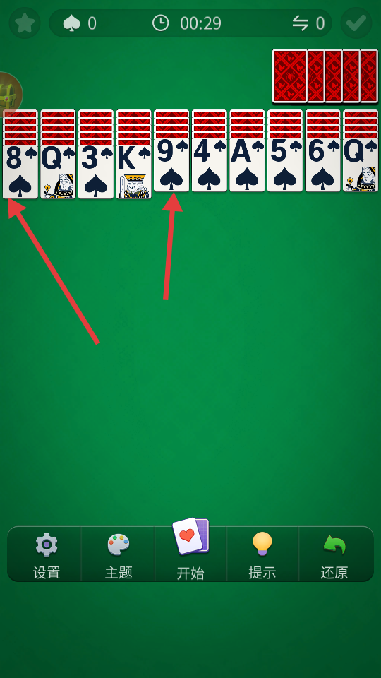 2、每次只能移动连续的同花色牌列,想耍小聪明混搭移动?系统会无情拒绝。
