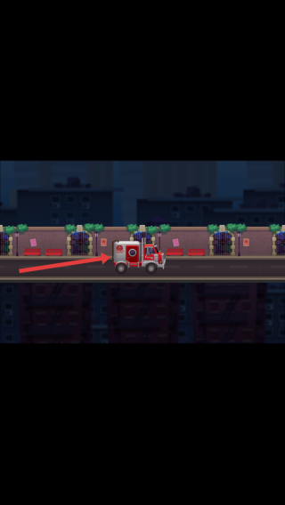 1、操控车辆:在城市街道场景中,点击并操控红色消防车沿道路移动前行。