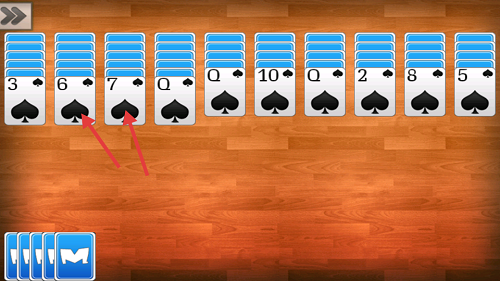 2、把牌拖到比它大1点的牌上,比如黑桃9只能趴在黑桃10身上。