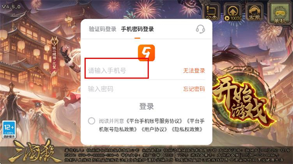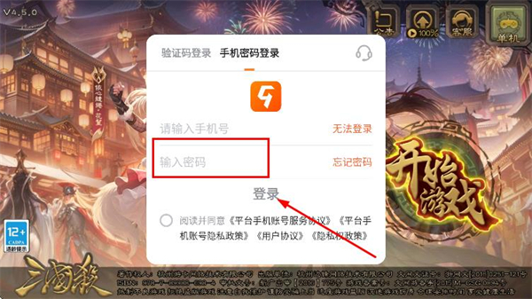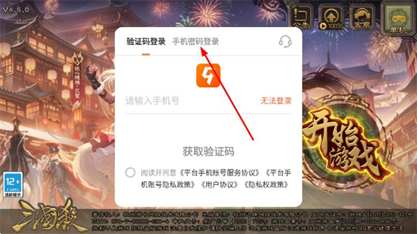 2、在登录窗口中,选择并点击上方的手机密码登录选项。