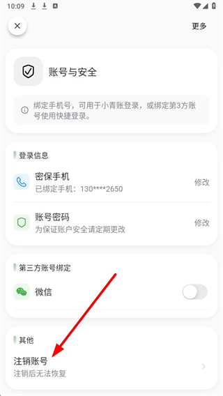 4、早账号与安全的页面,找到注销账号选项并点击,进入注销操作。