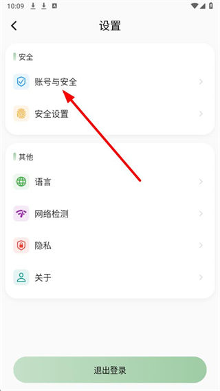3、在设置界面里,点击账号与安全选项,进入账号与安全的操作页面。