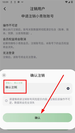 4、在注销用户页面,输入确认注销并点击确认按钮,完成小青账账号的注销操作。