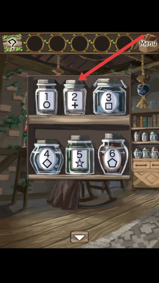 3、在解谜场景,观察架上标1-6数字与图案的瓶子,收集线索,卡关时点左上角问号、右上角【Menu】辅助。