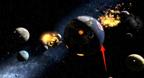 2、锁定【受撞击燃烧的地球】,调整周边天体(如小行星)运动,模拟更复杂的天体碰撞或救援(如改变撞击物轨迹)场景。
