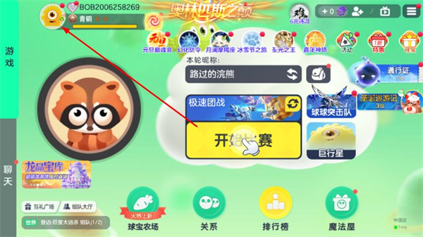 1、打开球球大作战主界面,点击左上角的个人头像,进入个人信息页面。