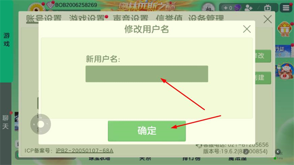4、在弹出的修改用户名窗口中,输入想要更换的新用户名。