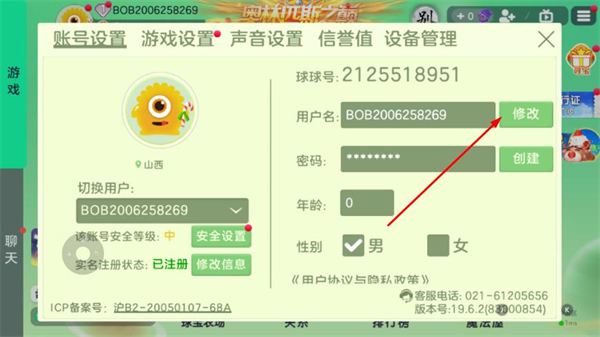 3、在账号设置界面中,找到用户名栏右侧的修改按钮,点击该按钮。