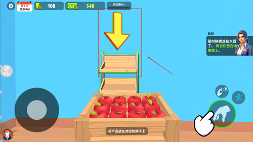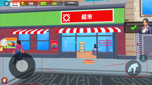 2、左侧控制区域用于移动方向和调整操作视角,右侧设有补货、结账等功能按钮,界面下方会显示当前的资金数额与各类商品的库存数量,方便玩家实时掌握超市的运营状态。