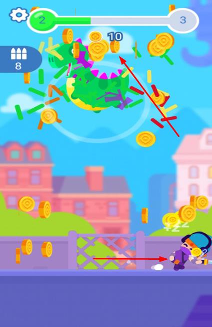1、瞄准目标精准射击:瞄准小恐龙射击需根据小恐龙的移动速度调整瞄准时机,确保精准命中,基础射击是完成关卡的前提,也是积累连击的基础操作。