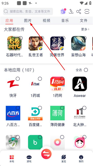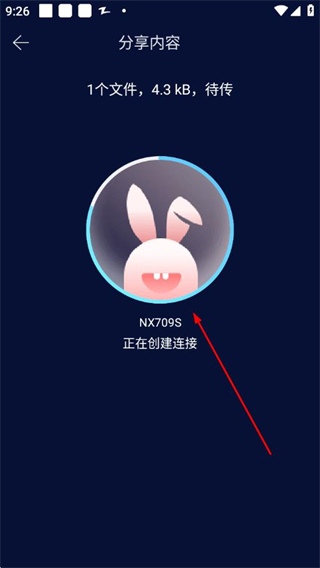 3、 进入分享内容页面后,选择目标接收设备,等待设备连接完成即可完成图片传输。
