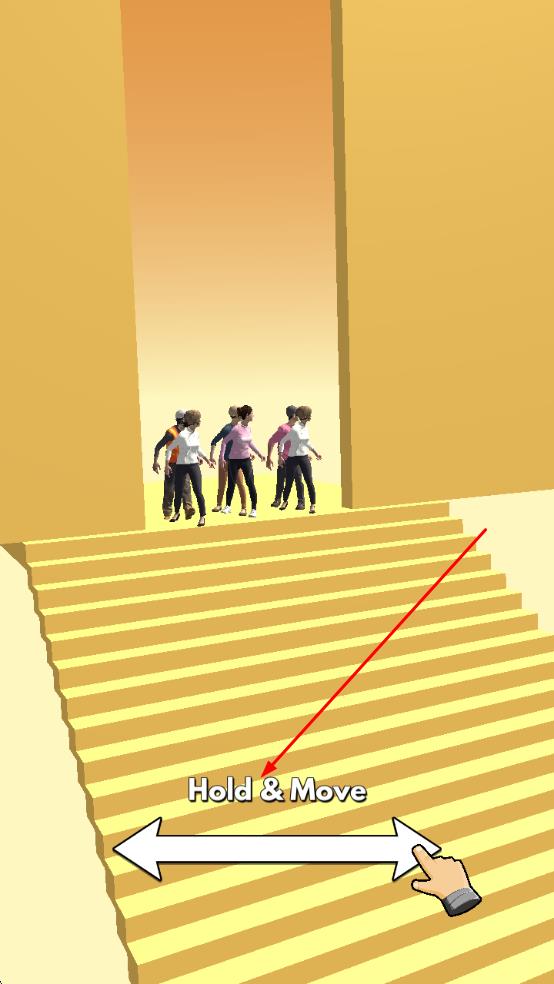 1、进入界面点击屏幕并移动【Hold--Move】,操控人群开始下楼梯,触发坠落挑战。