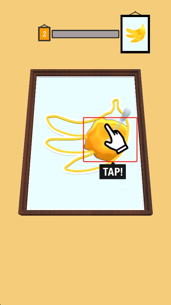 2、针对香蕉造型,点击“TAP!”位置,借助工具雕琢黄色粘土,依据上方香蕉图案,细致处理轮廓与细节,完成雕刻解锁下一段。