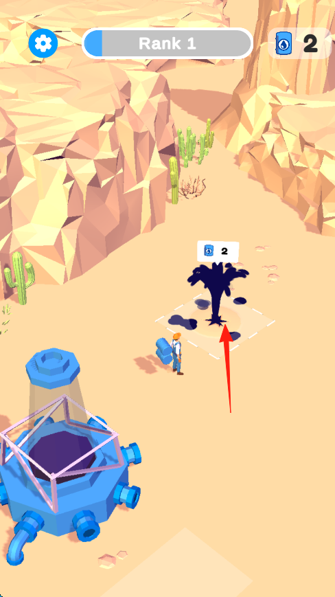 2、带着油桶到到箭头指向2处,释放石油资源,使其复苏,获取奖励。