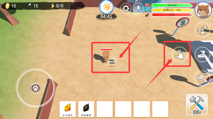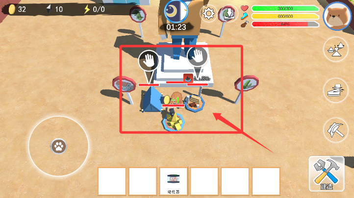 4、成功搭建后靠近帐篷,点击手掌按键可增加设施资源产出。