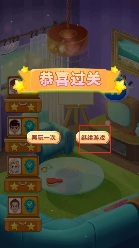 3、过关后可以点击继续游戏进入下一关挑战,或者选择再玩一次按钮,重新整理下过关的思路。