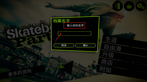 1、进入角色创建界面,自由输入个性名称,支持中英文及特殊符号组合,打造专属滑手身份。
