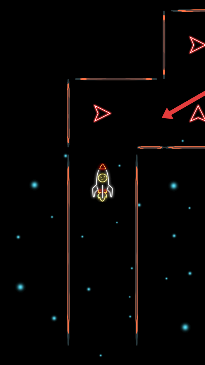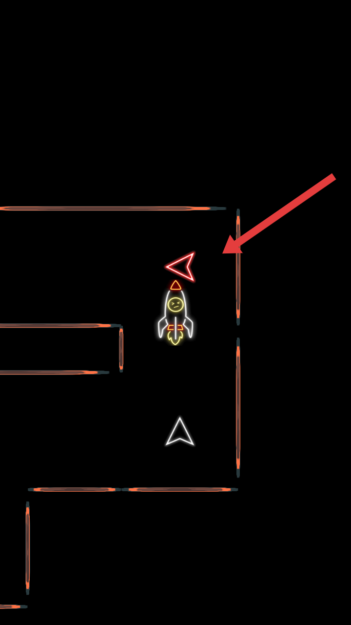 1、进入第一关关卡,在操控火箭的时候,需要跟随红色箭头与三角标识指引的方向进行移动。