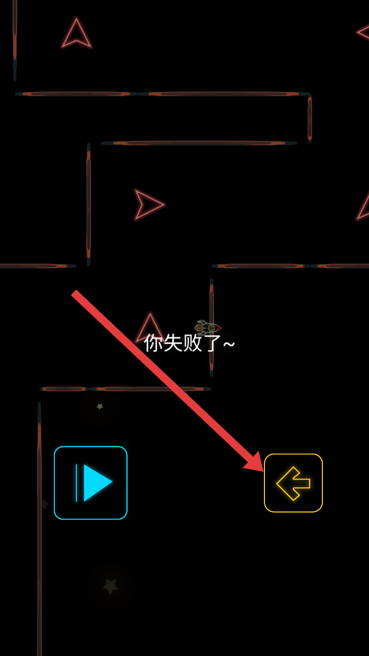 2、在碰到障碍物挑战失败后,需要点击界面右侧黄色返回箭头的按钮,重新开启这关游戏。