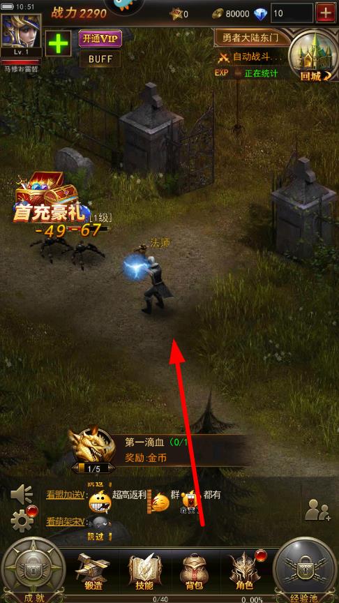 2、在广阔的魔幻地图中探索,挑战沿途来袭的外敌与怪物,通过战斗获取经验、金币和装备资源,用于提升角色等级、强化武器装备,不断增强自身战力。