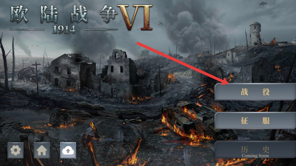 1、在欧陆战争VI-1914主界面,点击战役选项,进入战役选择页面开启特定战争剧情体验。