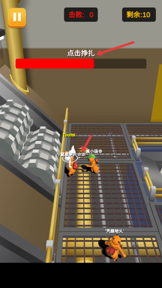 3、战斗中若被敌人控制,出现点击挣扎提示时,快速点击挣脱,继续用抓取、投掷击败对手,提升击败数。