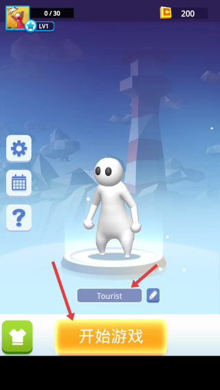 1、在角色界面,确认角色名为Tourist、等级Lv1等信息,点击开始游戏进入对战。