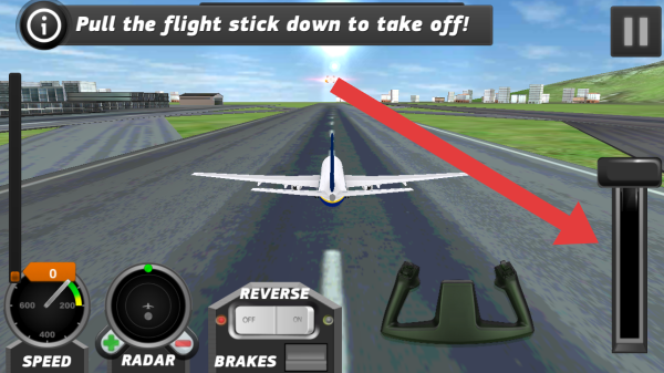 1、需要根据提示进行向下拉动右侧操纵杆,让飞机在飞行的跑道上预备起飞,准备开启飞行的任务。