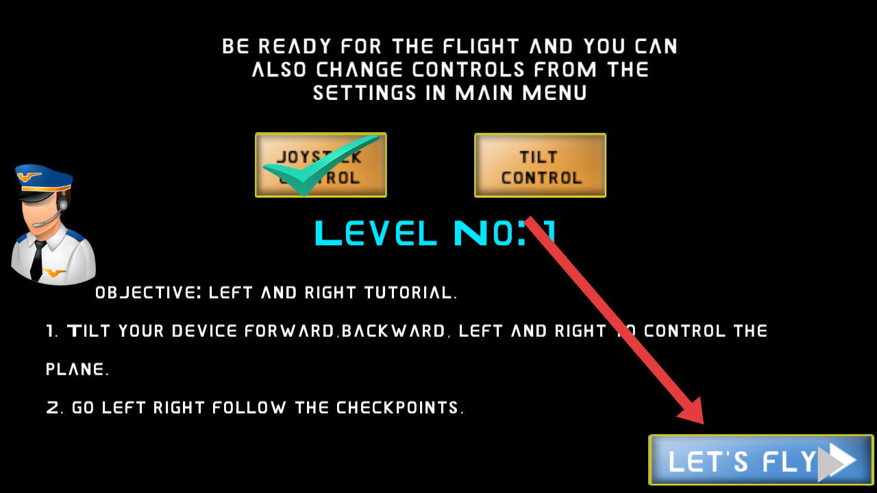 1、点击LET'S FLY开启第一关,按提示控制飞机进行左右、前后移动,学习新手的基础操作。