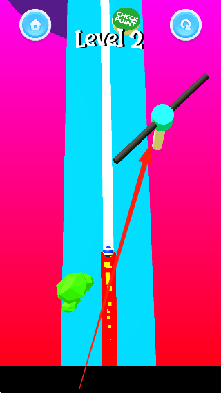 2、闯过部分关卡,熟练掌握点击与松开的操作,灵活躲避了不少障碍物,正尝试解锁新颜色的小球。