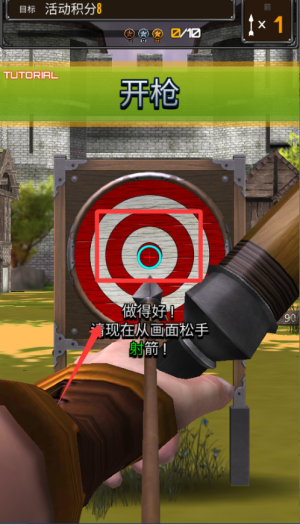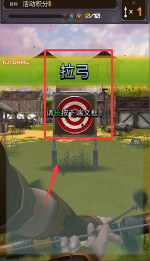 1、进入游戏后先选择一把顺手的弓箭、通过试射感受它的力度和手感。长按屏幕控制拉弓强度、上下滑动调整瞄准角度。