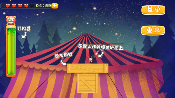 1、进入该关卡,紧盯着角色手中的炸弹,角色移动时预判的落点,点击屏幕销毁炸弹,阻止落地。