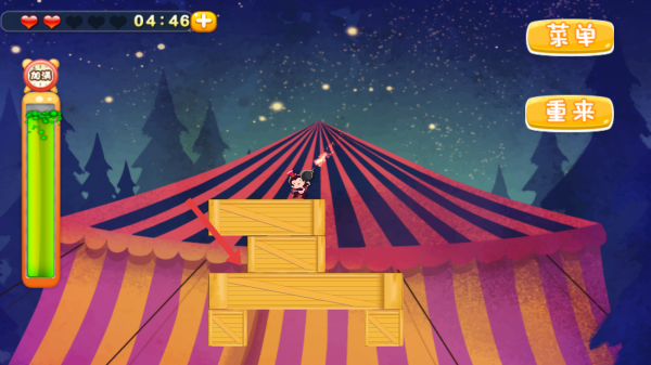 3、关注左上角的计时器与角色的血量,利用加速条,适时的冲刺,观察木块摆放规律快速通过。