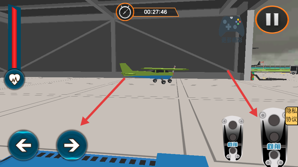 1、通过虚拟摇杆与姿态感应控制战机爬升俯冲,完成特技动作可获得额外积分。
