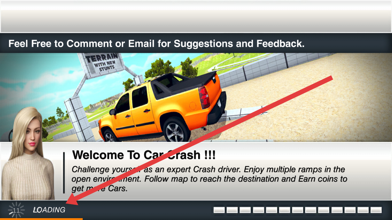 3、需要耐心的等待底部LOADING进度条加载完毕,正式的进入真实汽车碰撞测试特技挑战的场景。