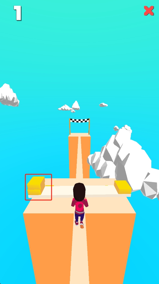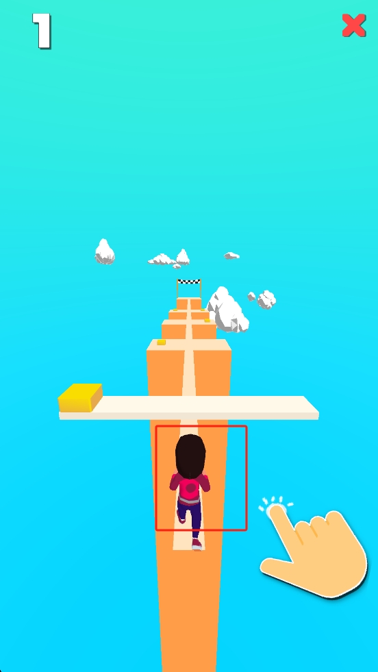 1、点击屏幕操控角色,我们需要再移动的过程中尽量的保持平衡,顺便收集路上黄色方块,向终点前进。