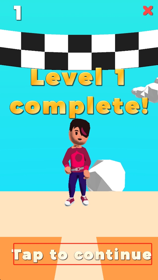 3、通关后,点击Tap to continue进入下一关,继续挑战更复杂赛道,积累绘制路径技巧,提升通关效率。