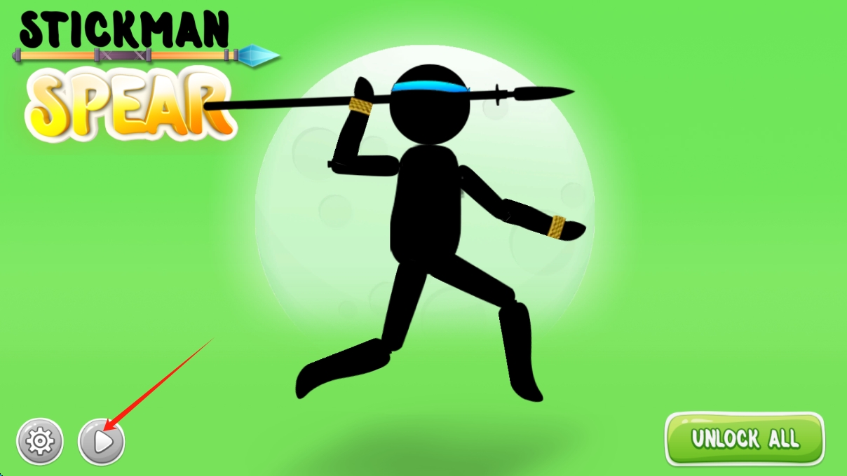 1、在游戏启动界面点击左侧播放按钮,进入Stickman Spear游戏,点击按钮开始游戏。