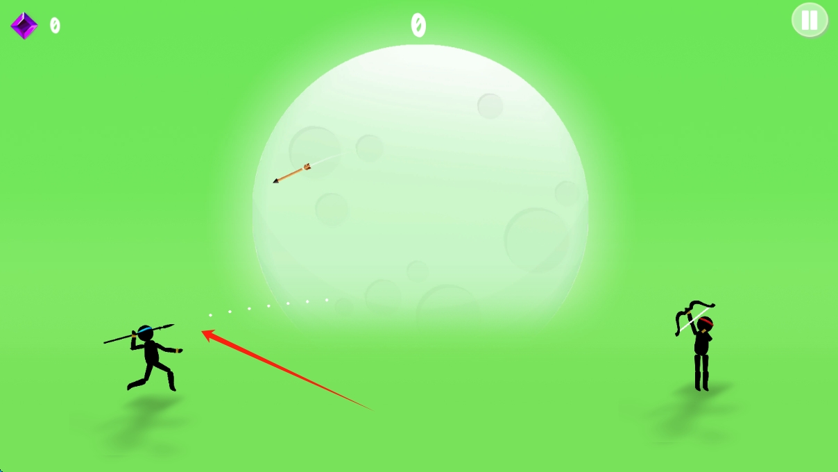 2、战斗时观察敌人位置,点击屏幕操控火柴人投掷长矛,精准攻击对手,点击瞄准敌人。