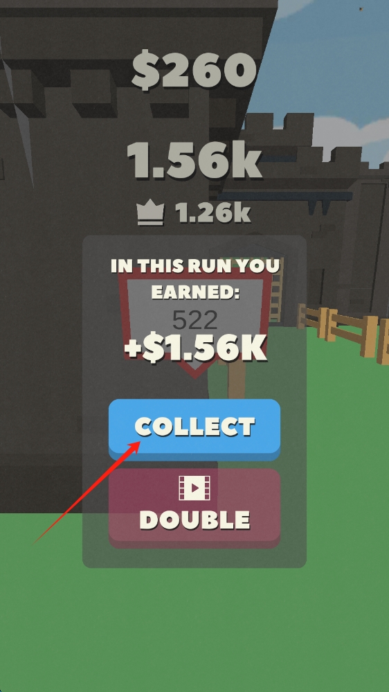 3、结算时点击蓝色COLLECT按钮,领取本次游戏获得的金币奖励,点击按钮继续游戏。