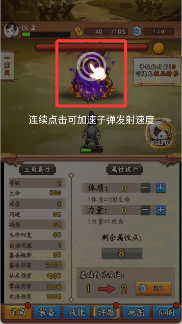 4、战斗时连续点击可以加速子弹的发射速度。