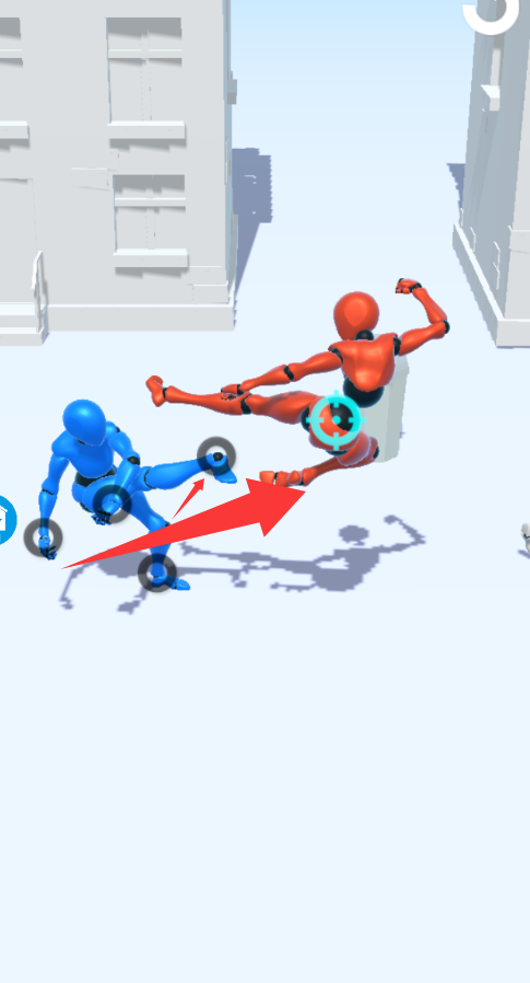 3、点击长按脚位置那个圆圈移动到敌人的肚那里。
