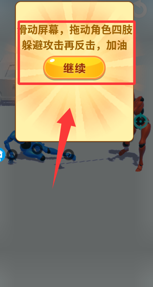 4、滑动屏幕,拖动角色四肢躲避攻击再反击,加油。