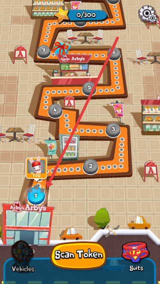 1、在地图界面点击标有1的起点,进入Level-1关卡,目标需收集18枚Roast-Beef-Coins,开启本次奔跑挑战。