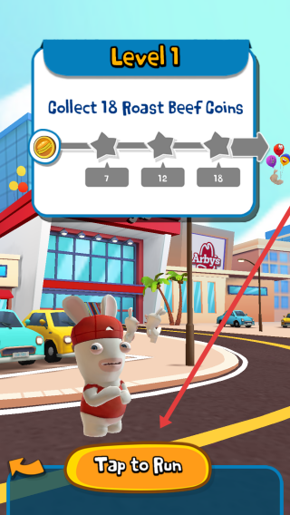 2、进入Level-1后,点击下方Tap-to-Run按钮,操控角色开始奔跑,途中留意收集Roast-Beef-Coins,向星级目标推进。