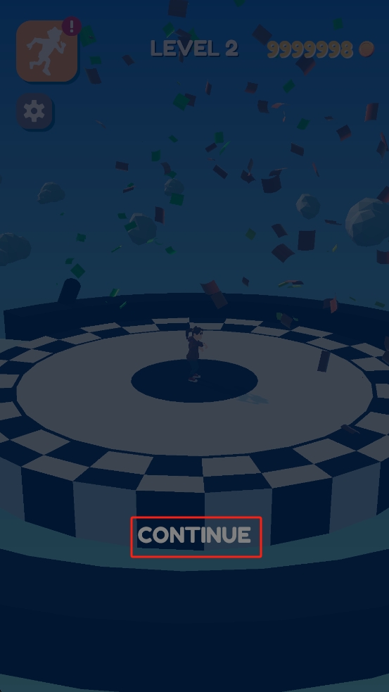 3、冲过当前关卡终点后,我们点击红框内的CONTINUE按钮,即可进入下一关,继续挑战新的跑酷关卡。